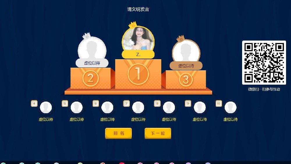 后台添加好投票选项,用户通过扫码参与投票,大屏幕上会实时滚动显示每个选项的票数,投票选项可以是单纯的···